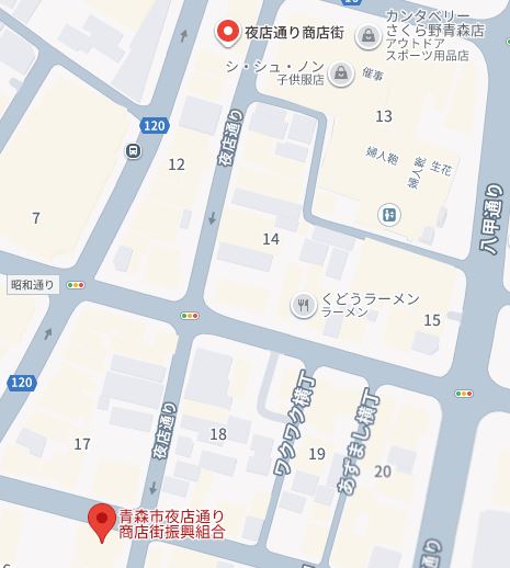 夜店通り商店街 事務局:青森市古川一丁目16番4号